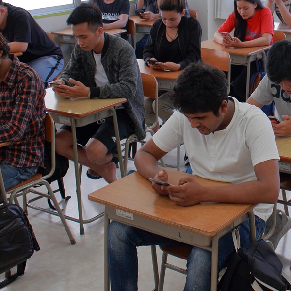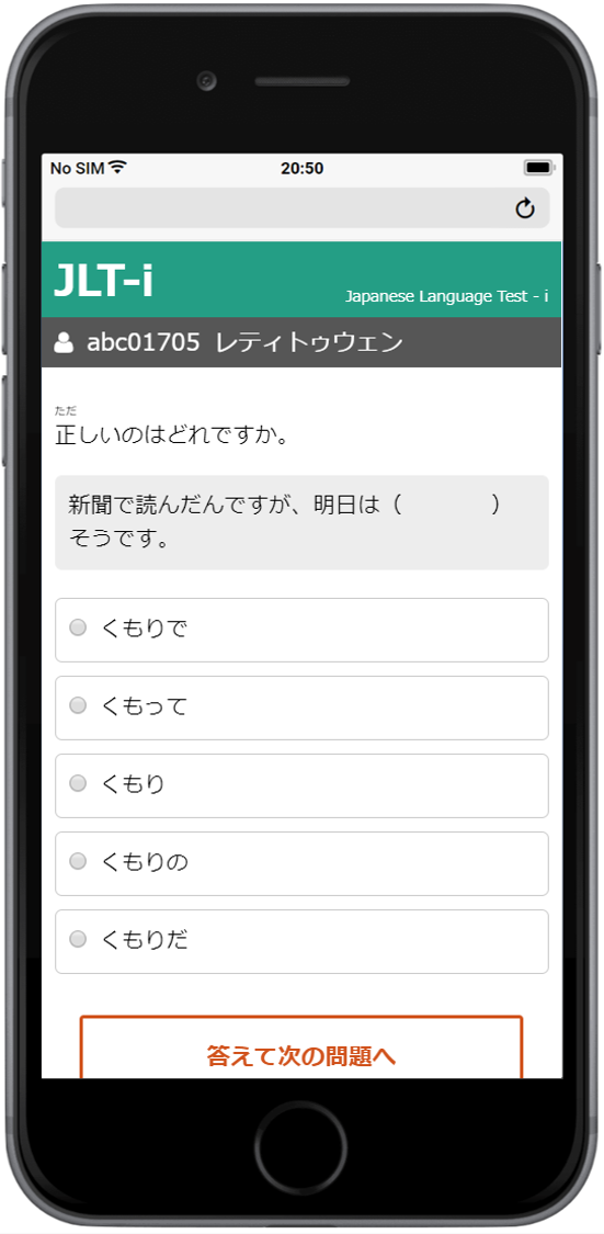 JLT-iは、日本語教育機関の各クラスの中で「紙」での試験を実施する場合と全く同じ環境で実施できます。紙での試験と違うところは、学生たちが自身のスマホでJLT-iの試験サイトにログインし、試験問題に答えるという点です。